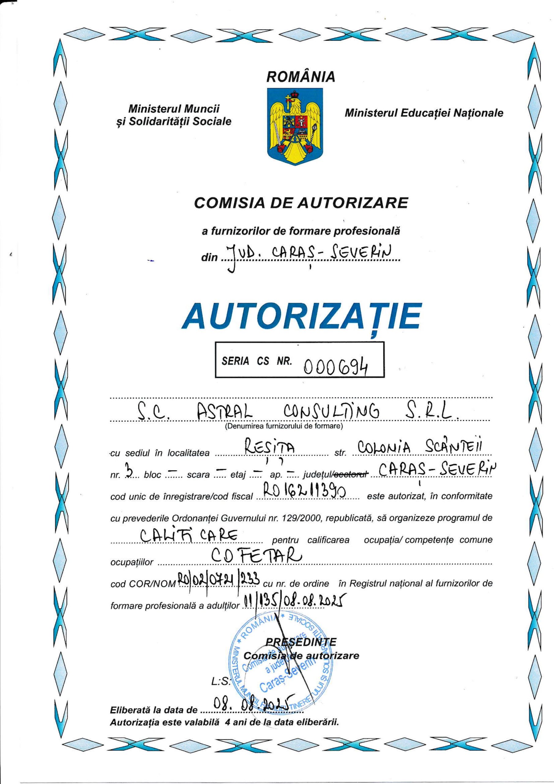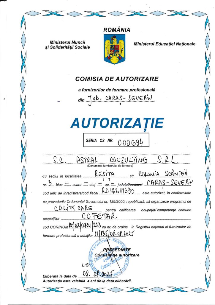 Autorizatie cursuri calificare asistent personal persoane cu handicap grav